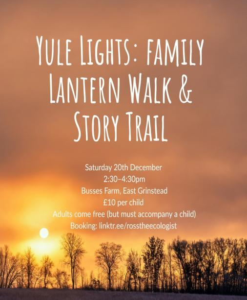 Five wild cocktails, foraged snacks, and a relaxed talk on the plants and stories behind winter hedgerow ingredients. Yule Lights: Family Lantern Walk & Story Trail