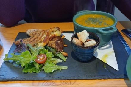 I chose the roasted parsnip and roasted carrot soup and half a toastie, for £8.50; my other half chose the omelette with cheese and mushrooms for £7.95 so it was all within our budget. The soup was tasty, accompanied by croutons and