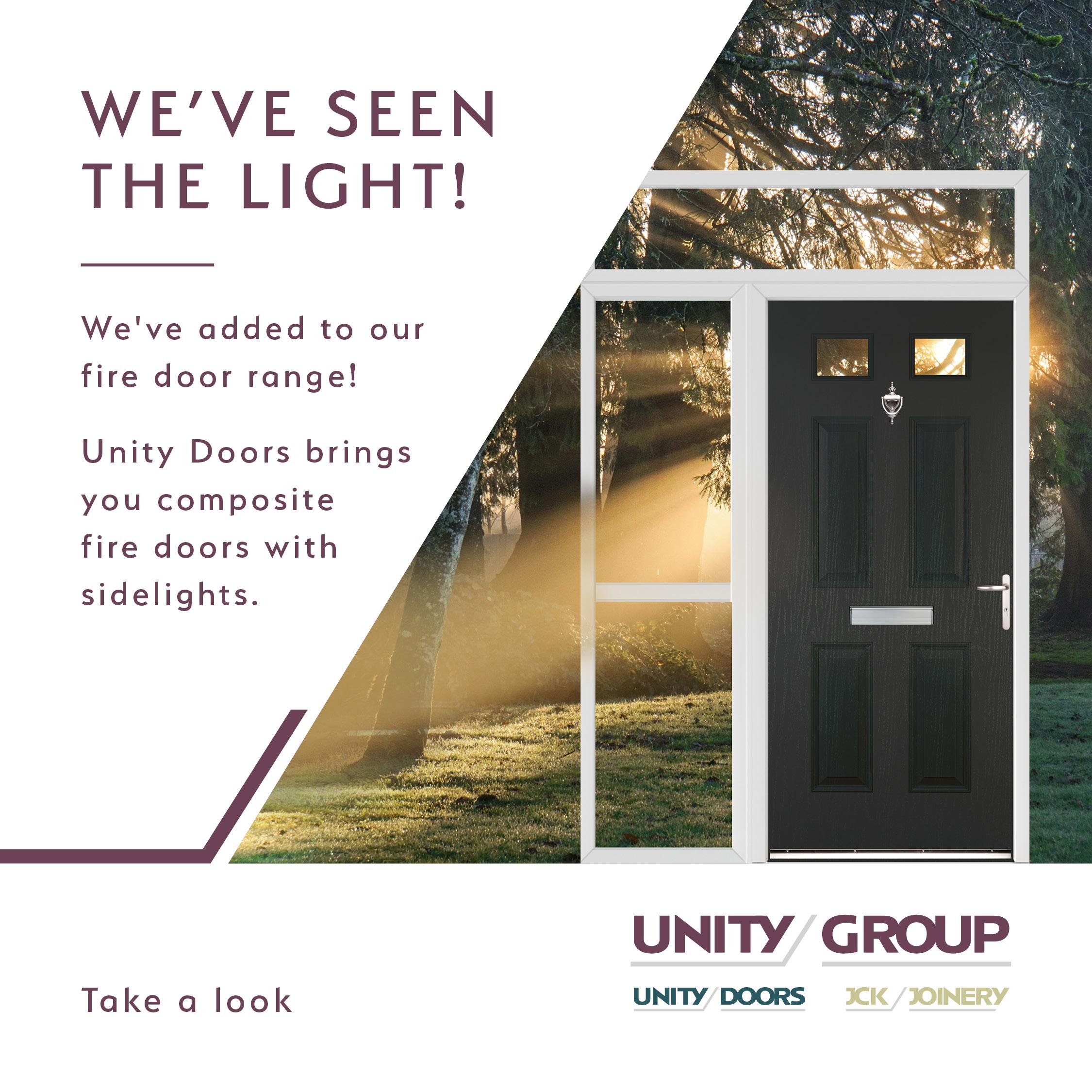 Unity Doors has always been committed to bringing its customers more. Now the country’s leading manufacturer of composite fire doors has raised the bar even higher, with the introduction of composite fire doors with sidelights. Available in all of their existing fire door styles and colours, and boasting all of the dependable, bi-directional and independent third-party testing you’ve come to expect from this premier brand.