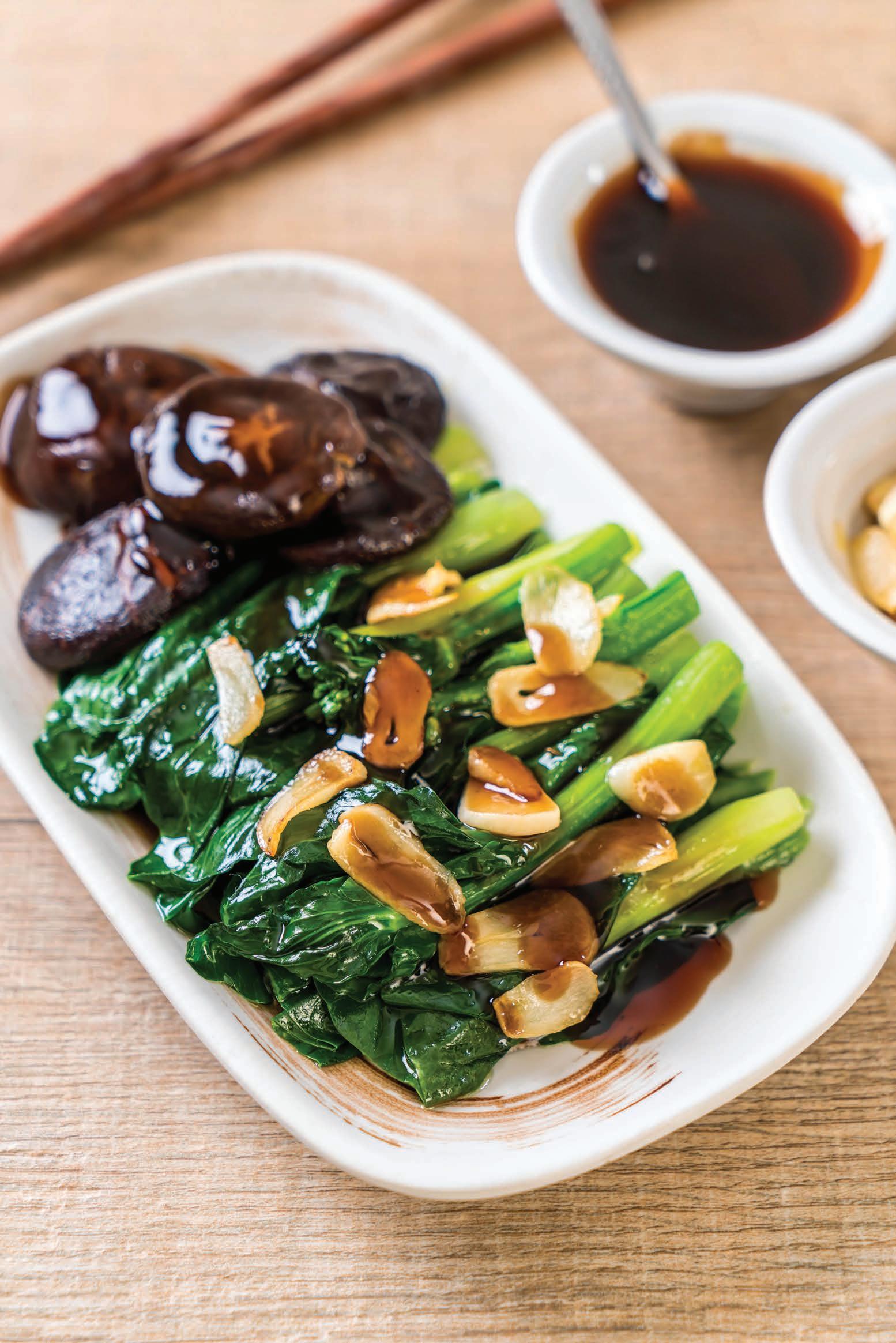 Poached Hong Kong kale with shiitake mushroom
