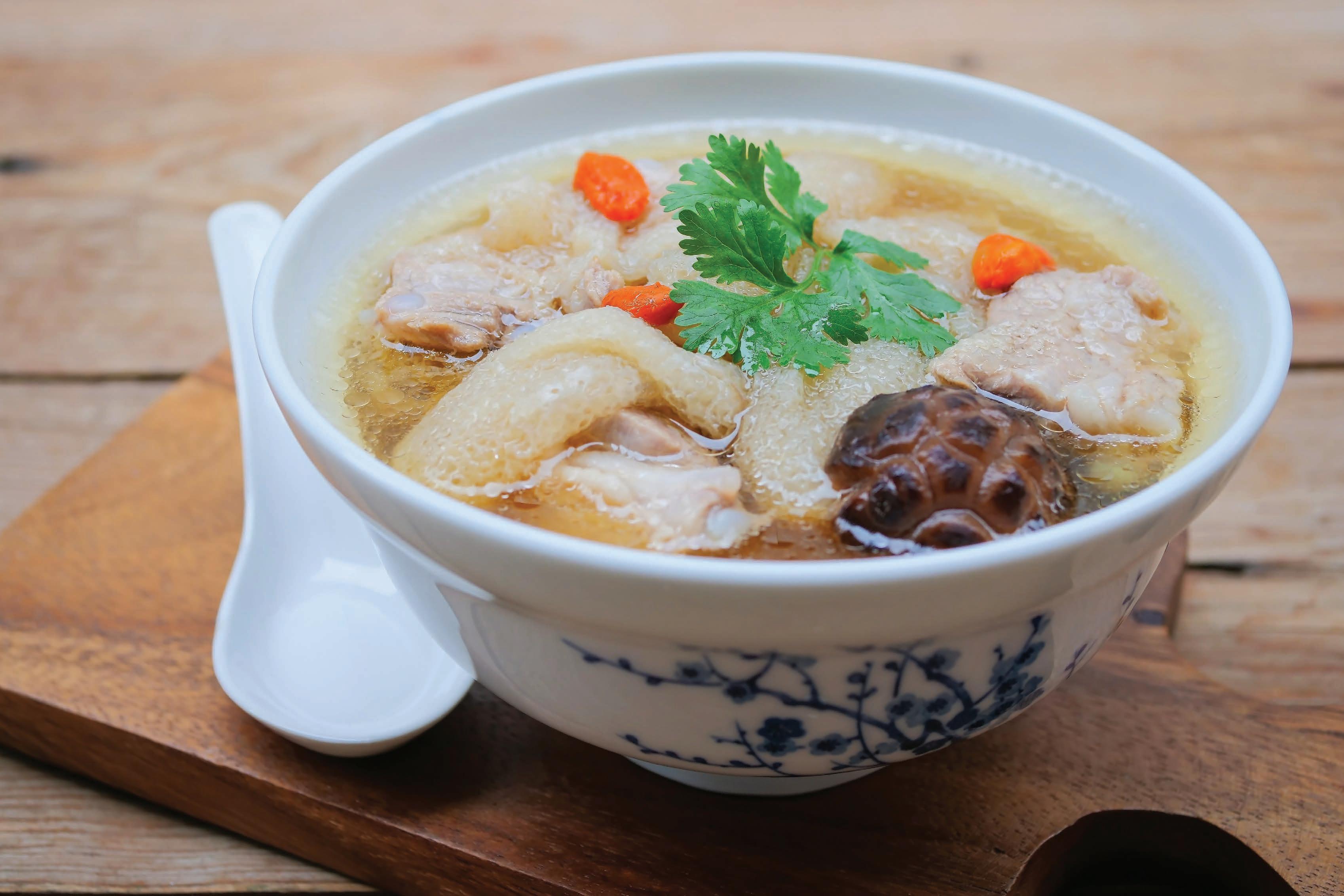 Bird’s nest soup with bamboo fungus in Chinese herb broth