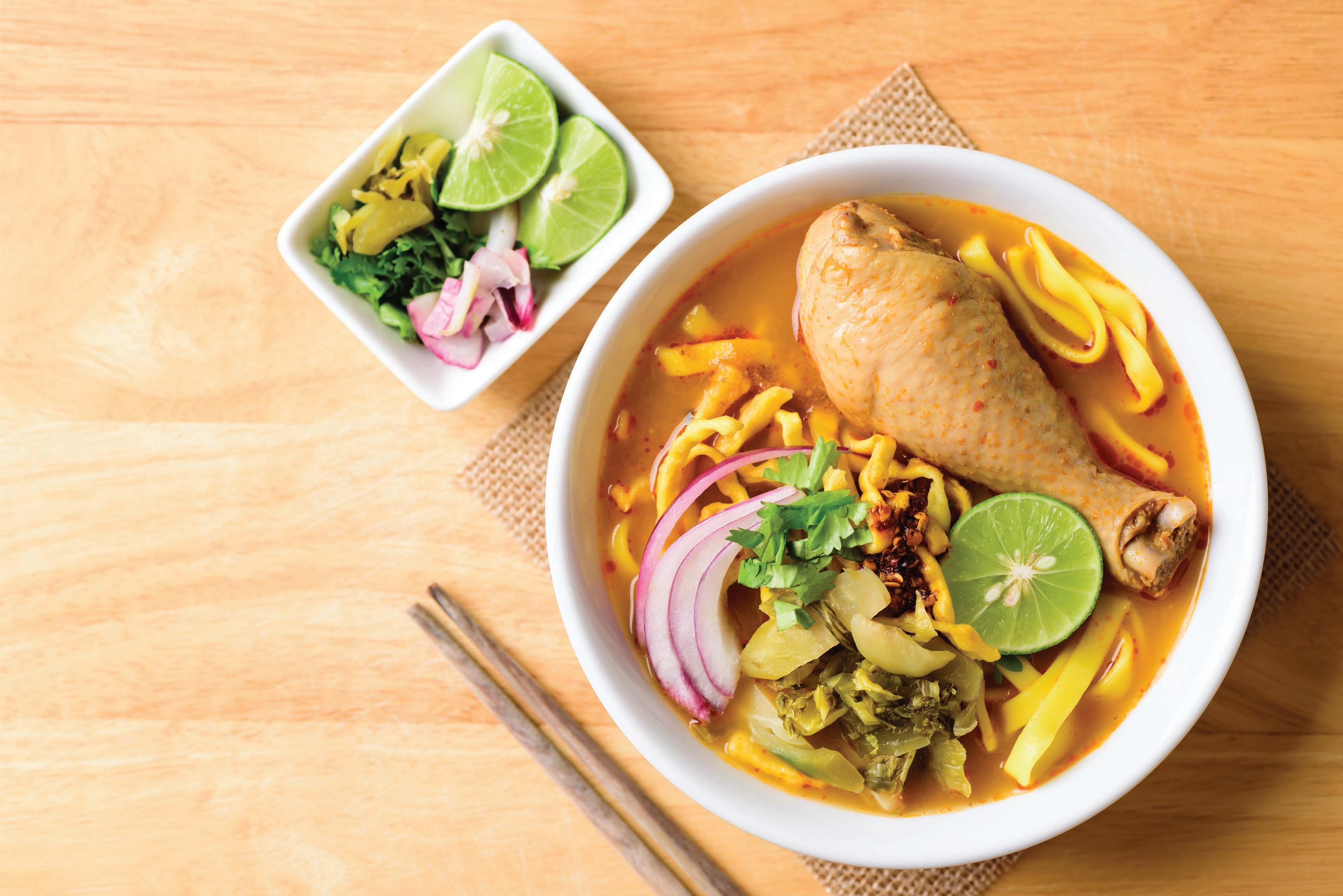 Slow cooked rice porridge with minced pork or chicken served with ginger and spring onion