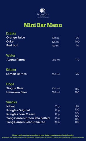 Mini Bar Menu