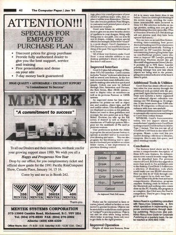 Nelson Ruest is a publishing consultant Nodes can be converted to lines or With RESOlumWS EnterPriSeS, a firm curves, joined, edited or broken or even moved to precise locations. 'Objects can which specializes in implementing corbe stretchedor scaled &omcentrepoints porate communications through deskor "nudged" to precise positions. Objects . top publishing. REsotunoNs also pubcan also be seen when being moved, lishes Resotvrleas Guide for Corporate which helps in moving them only once Publishing on a quarterly basis. He can to get them to the right position. be reached at (604) 683-1599.