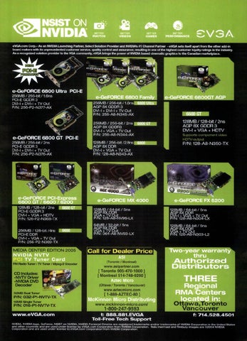 eVGA.corn Corp.— As an NVIDIA Launching Partner, Select Solution Provider and NVIDIA's fff Channel Partner — eVGA sets itself apart from the other add-in board makers with its unprecedented customer service, quality control and assurance; resulting in one of the highest customer loyalty ratincgs in the industry. As a recognized solution provider to the VGA community, eVGA brings the power of NVIDIA based cinematic graphics to the Canadian marketplace