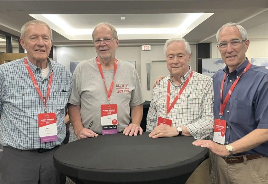 Alumni Weekend in June drew groups of alumni to Oxford, including this house party bunch (le ) and Jerry Wissman ‘65, Kurt Olt ’65, Dick Hirsh ’65, and Tom Lillich ’65 (right).