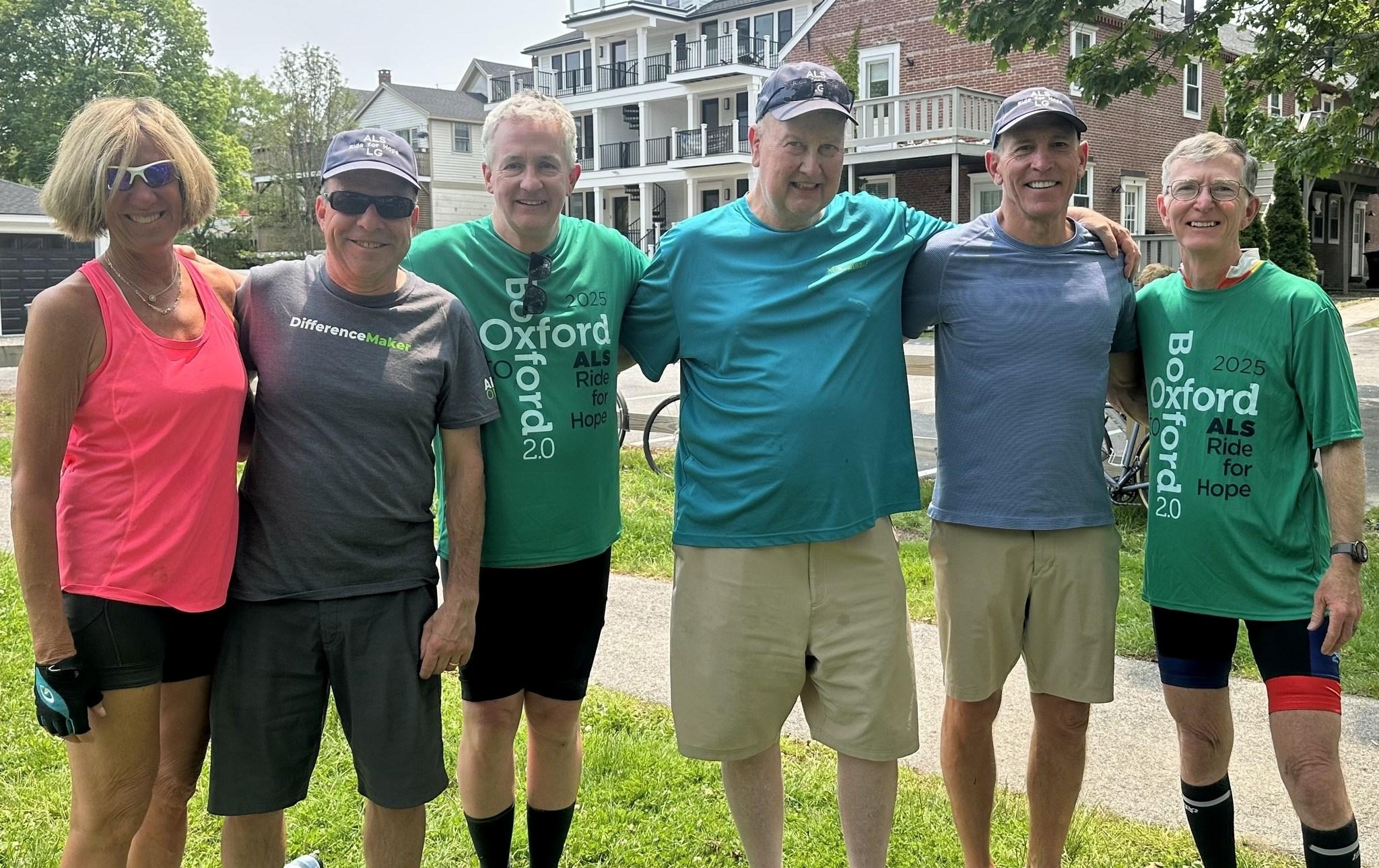 The Alpha Delt biker gang rebooted (re-pedaled?) the Oxford-to-Boxford ALS charity ride of a couple of summers back, this me from Oxford, Maine to Boxford, Mass: Li le Sis Ann Brown Miller ‘81, Doug McIlvaine ‘81, Jim Jorling ‘81, Jim Venezia ‘78, Sco Golan ‘80, Dave Foster ‘81.