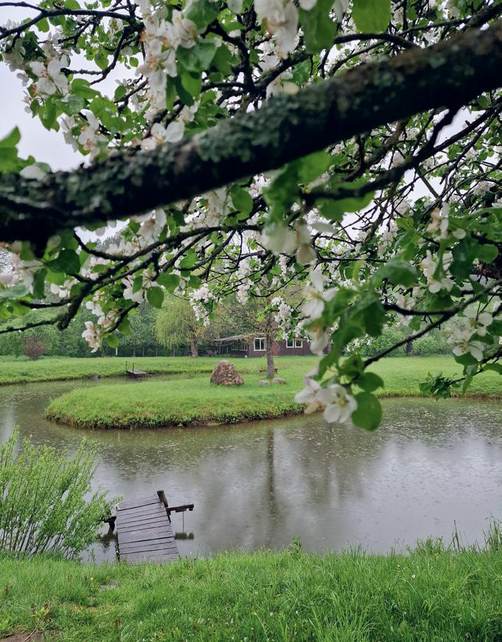 lazdynais, avietėmis, šaltalankiais, prie namų auga beržai, pušys, ąžuolai, iškastas dirbtinis tvenkinys, o kitoje namo pusėje teka upelis. Namas, tiesa, senovinis, vėjų perpučiamas, malkomis kūrenamas. Tačiau aplinkui nėra žmonių, išskyrus vieną kaimynę. „Man svarbiausia – landšaftas, – neatsidžiaugia dabartinė vienkiemio šeimininkė. – Galėčiau net palapinėje miegoti, svarbiausia – aplinka, kuri mus supa.“ Dar gyvendama miesto centre ji daug laiko praleisdavo prie Vilnelės, netoli Pūčkorių atodangos – nuvežusi vaikus į ugdymo įstaigas ten maudydavosi, mankštindavosi, medituodavo, bėgiodavo. O savaitgaliais visa šeima traukdavo stovyklauti į gamtą net ir pačiu blogiausiu oru: pasiimdavo virduliuką, makaronų vienai dienai, vaikštinėdavo, gamindavosi valgį ant laužo. Tad persikraustymas į vienkiemį menininkų šeimai atrodė labai logiškas žingsnis.