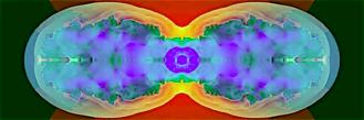 Cross-section of a gas thermal-density diagram showing the temperature distribution of ‘hourglass’ lobes. Source: Prof. Vincent Icke, Univ. Leiden.