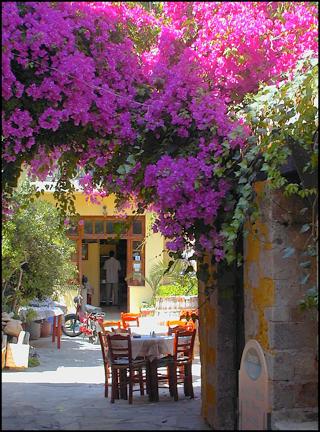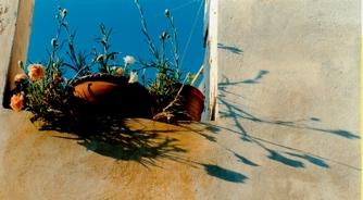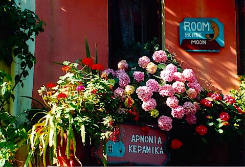 The passing cornucopia was making me lose interest in talk. The delightful word τριαντάφυλλο, triantáfyllo, for the rose, meaning 'thirty petals.' Flowerpots made of old cheese forms.