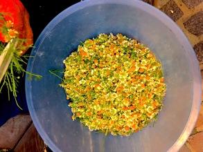 One of the men picked up a sizeable bundle of herbs he had gathered and stored under an olive tree. Little nubs of