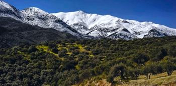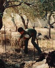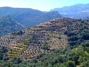 High up on ridge crest a man was grafting new branches onto an old olive trunk.