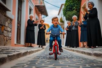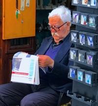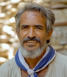 A moustached old man in a weather-beaten hat made a doll for his grandkids out of a pine cone, with dry grass for hair and chickpeas for eyes.