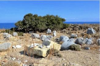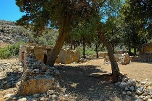 Nearby was a circle of stones that marked an aloni αλόνι or threshing pad for barley. In the distance was the grass-edged meander of a seasonal rivulet so small that no matter how hard or long the rain, it would remain always a rivulet thanks to the water-draining porosity of Crete’s limestone geology.
