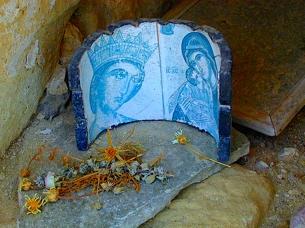 Inside the now-rebuilt church Irini introduced us to the four remaining monks. Beards to their waistlines, faces gullied from a lifetime of tending their flocks both sheep and human, countless hours hoeing their gardens under the blazing Cretan sun, their days are work, prayers, midday meal, prayers, work. They rise at four and sing liturgy till seven. In the evening they sing the liturgy from four till they go to bed at seven.