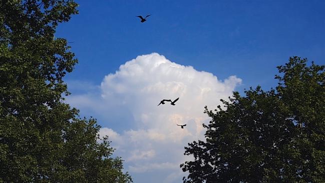 Two little boys hurled stones at a beehive in a tree, then fled as fast as they could. When they grow up they will hurl political slogans or marketing pitches, then flee the consequences. Leaf shadows tremble on the ground.