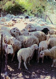 Breezes coming down the valley piled the wool against olive trunks and a fence. Fresh-cut wool is the most unpromising raw material the Cretan economy produces. It has an unpleasant greasy feel from its lanolin, more so on the white softness of the belly fleece nearest the skin; less on the sides where it had been worn off by the bushes. Black wool has less lanolin. When the grease got too thick on the men’s hands, they washed it off with a squirt of dish detergent and water from a plastic bottle.