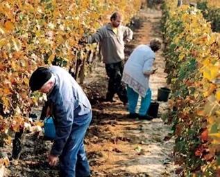 Everyone chatted as we arrived at our allotted rows. Our rows were distinguished from others by blue paint on the end posts. Someone bent down to strip off a few grapes. He nibbled a few. ’The grapes are ready’ he informed me, ’when the skin breaks easily as you bite them. But the smart farmers let them ripen a week or two longer to reach their full sweetness.’ He wiped his hands on the dew-wet grass.