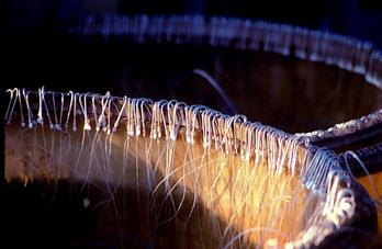 One of other teams started with the belly and worked up the flanks in precise windrows, rolling back the wool as he went, so when he reached the short hair on the top of the back, his mat looked like a woolly waffle. A third pair started