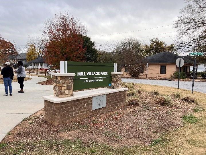 • Mill Village Park - Additional playground amenities, relocation of Rocks, In-ground grill/coal container, stationery, branded trash/recycle near pavilion, add parking including ADA spaces on street
