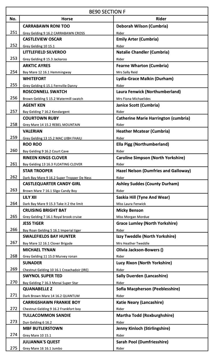 ALL REASONABLE AND PRACTICAL STEPS ARE TAKEN TO ENSURE THE HEALTH, SAFETY AND WELFARE OF THOSE ATTENDING THE EVENT. SPECTATORS ARE, SO FAR AS IS REASONABLY PRACTICABLE ENCOURAGED TO VIEW AN ONLINE PROGRAMME WHICH CONTAINS A MAP SHOWING THE DIFFERENT PARTS OF THE EVENT SITE AND SUITABLE VIEWING LOCATIONS. SPECTATORS WILL ALSO BE DIRECTED CLEARLY TO WHEREVER THEY WANT TO GO E.G. INFORMATION POINT, FORMALLY SECRETARY’S OFFICE, TOILETS, FIRST AID POINT OR CROSS COUNTRY COURSE. SPECTATORS WILL ALSO BE PREVENTED FROM STRAYING INADVERTENTLY INTO THE PATH OF ONCOMING HORSES BY DEFINED CROSSING POINTS, SIGNAGE, STRINGING, WHISTLE BLASTS OR PUBLIC ADDRESS ANNOUNCEMENTS.