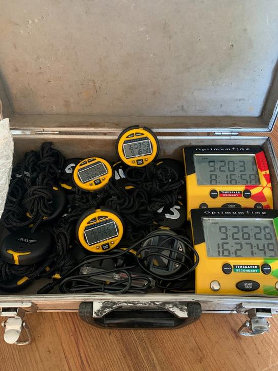 Optimum Time Master & Slave timing clocks plus 16 indivdual stop clocks for jump judges