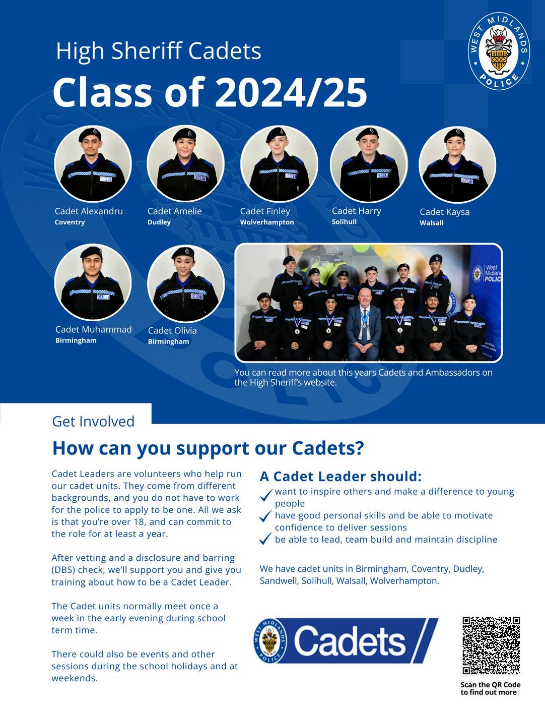 I would be incredibly grateful if you can help to educate the younger generation about the role. Please do reach out to us via our newly-created website, for which the QR code is on the front page, and I would be delighted to visit you. I’m very lucky to be ably assisted through my year by Becky, Greg and Kayleigh within their respective roles (more of which is explained later on). A huge thanks to all the exceptional cadets who I have appointed to join me throughout the year I’ve been impressed at how they all care about creating a real difference to society at such a young age Indeed, one has already saved a person’s life!