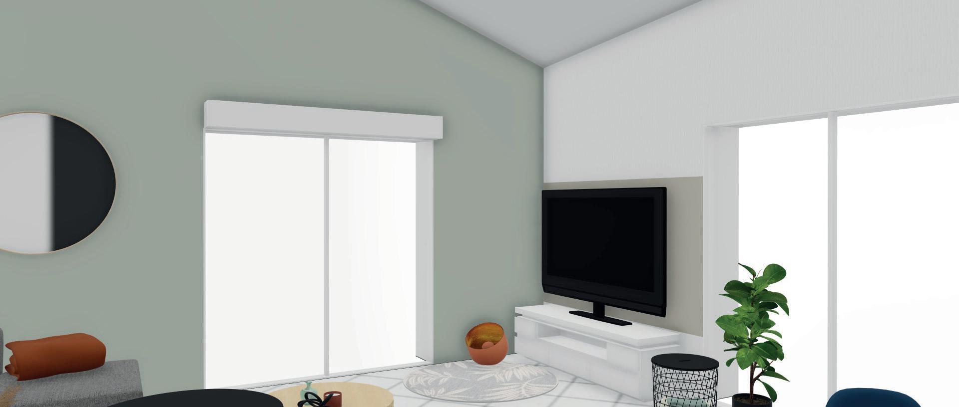 Pour ce projet, l’objectif était de réhabiliter une pièce de vie dans une maison. Il fallait réfléchir à l’agencement, au mobilier et à la décoration ainsi que les matériaux.