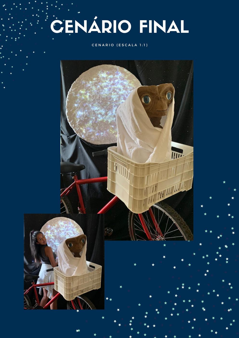 O projeto da disciplina de Cenografia foi realizado com o objetivo de cria uma exposição com cenas dos filmes mais marcantes de cada década escolhidos a partir de uma pesquisa com o público alvo No nosso caso ficamos responsáveis pelo filme E T, representando os anos 80 D e t a l h e s d o p r o j e t o e á r