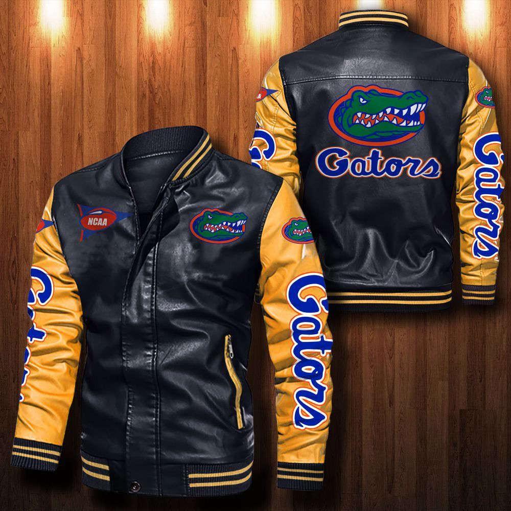 Introducing the Florida Gators Leather Bomber Jacket, a true masterpiece that blends style, comfort, and team spirit. Crafted with genuine leather, this jacket exudes timeless elegance and durability. Featuring the iconic Gators logo on the chest, it proudly showcases your allegiance to the team, making it a must-have for any die-hard fan. The ribbed collar, cuffs, and hem not only add a touch of vintage charm but also ensure a snug fit. With its full-zip front closure, this jacket is incredibly easy to put on and take off. The multiple pockets provide ample storage space for your essentials, while the soft lining keeps you cozy and warm. Whether you're heading to a game or simply want to showcase your team pride, the Florida Gators Leather Bomber Jacket is the perfect choice. Elevate your style game and show off your love for the Gators with this exceptional jacket. Don't miss out on this exclusive piece that offers both style and functionality, making it the ideal addition to any fan's wardrobe.