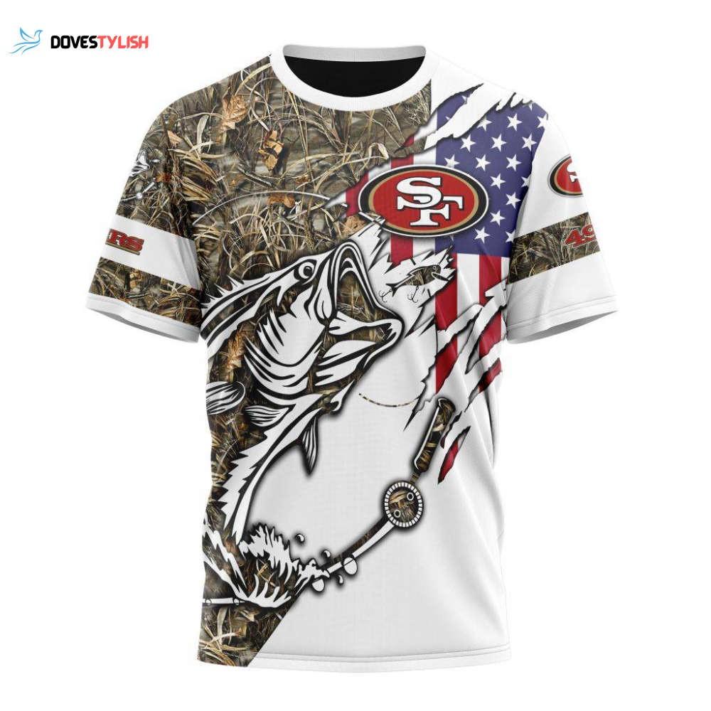 Join the ranks of proud 49ers fans and fishing enthusiasts by adding this remarkable t-shirt to your collection. Embrace the spirit of the game and your country with this captivating piece of apparel. Order now and elevate your fan gear to a whole new level!