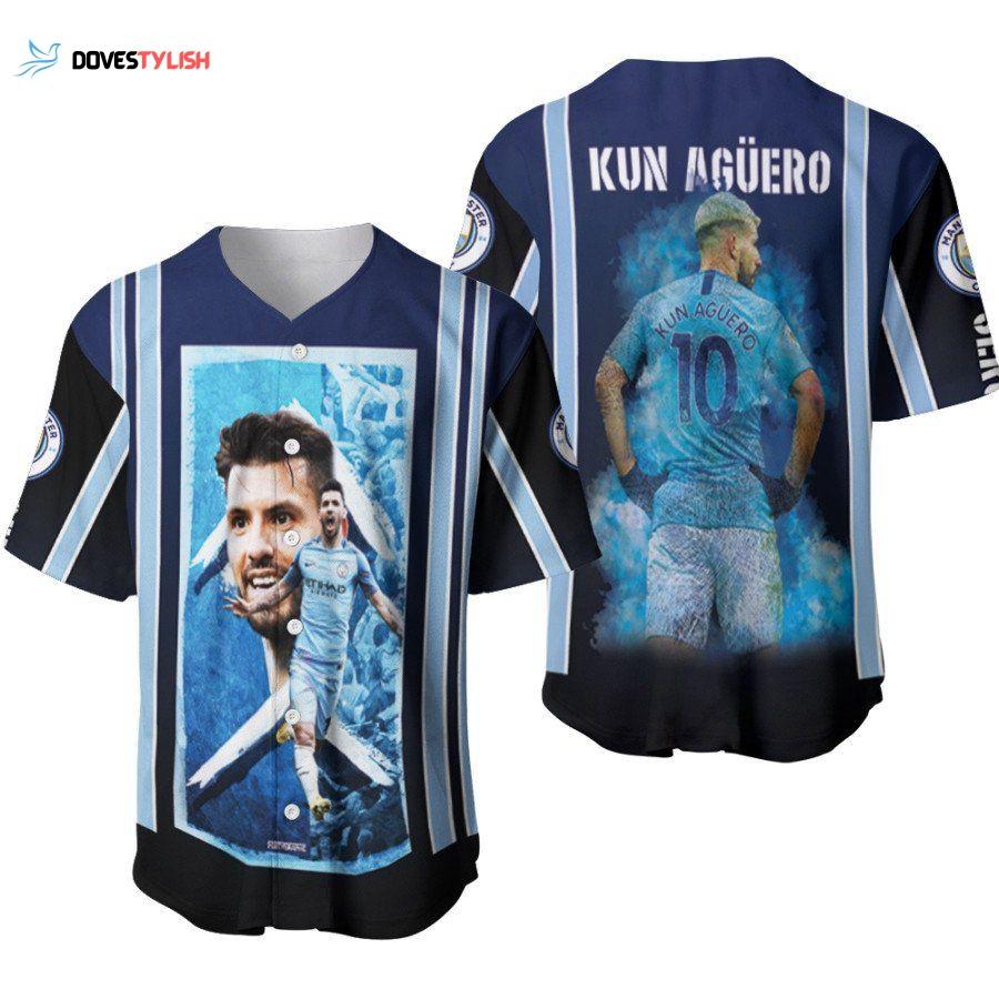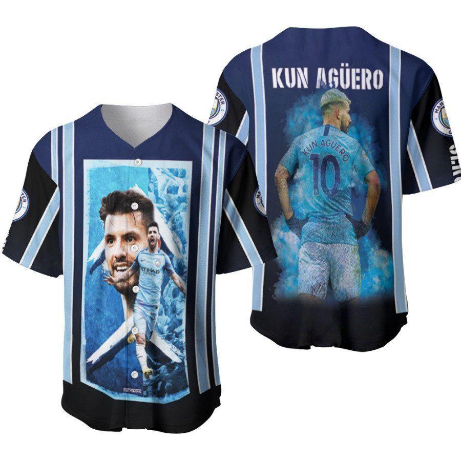 The Kun Aguero 10 Manchester City Football Club Blue Designed Allover Gift For Aguero Fans Baseball Jersey is not only a fashion statement but also a symbol of your passion and loyalty. With Aguero's iconic number 10 proudly displayed on the back, you can show off your admiration for this football legend wherever you go.