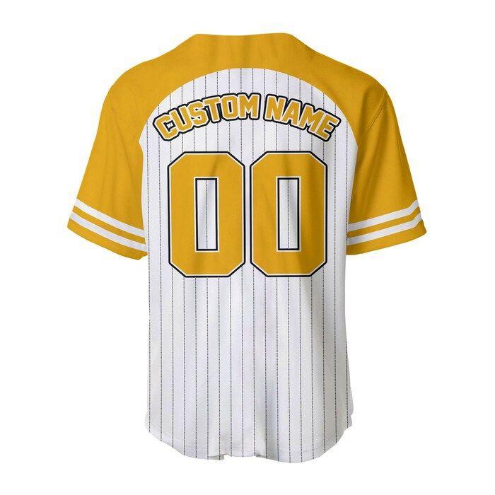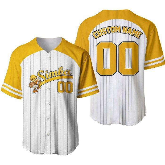 With our Lion King Simba Striped Yellow White Unisex Cartoon Graphic Casual Outfit Custom Baseball Jersey, you receive not just a piece of clothing, but a piece of nostalgia and happiness. It's an opportunity to relive the adventures of Simba, to embrace your inner child, and to make a statement wherever you go.