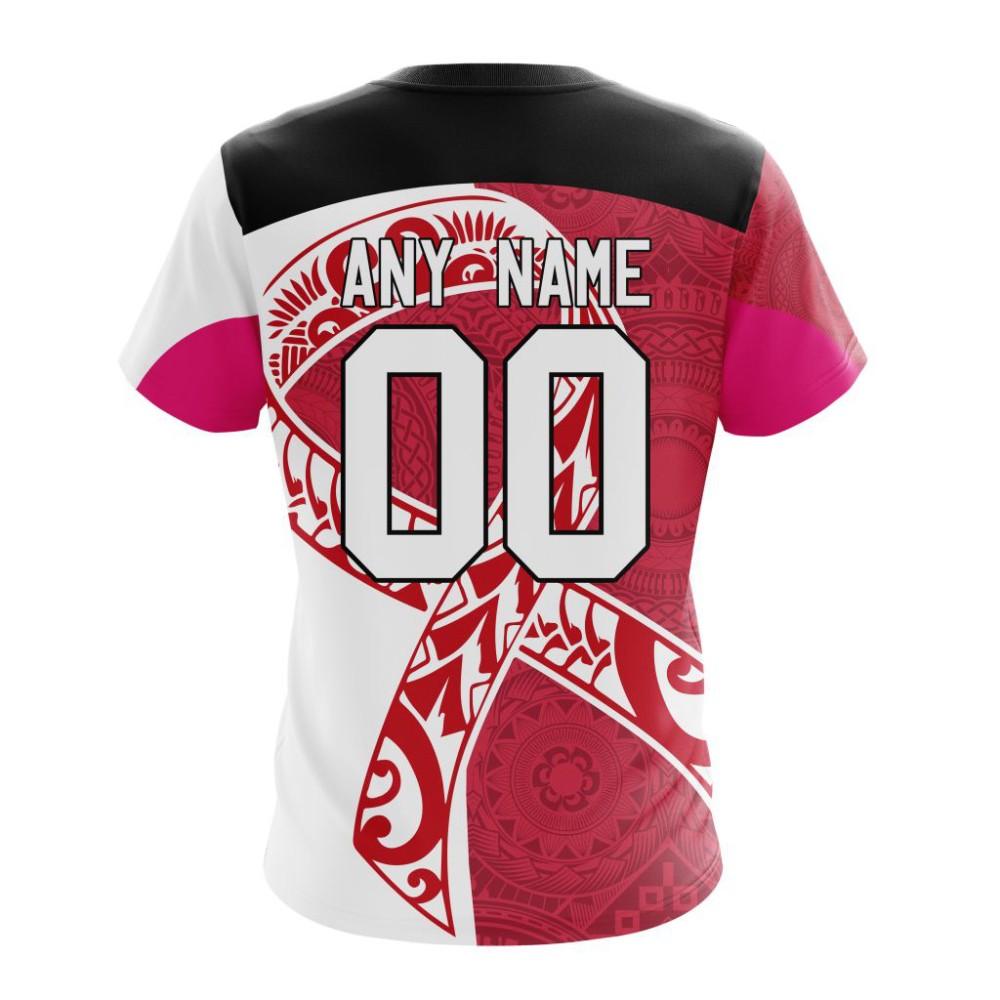 What sets this t-shirt apart is the intricate design that showcases the iconic New Devils logo blended with the vibrant colors of Samoa, creating a visually striking and captivating look. By wearing this t-shirt, you not only express your love for the team but also show your commitment to raising awareness for cancer research and treatment.