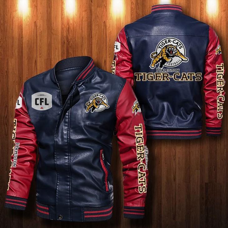 Wearing the Hamilton Tiger-Cats Leather Bomber Jacket goes beyond just showing your team loyalty; it signifies your passion for the game and your dedication to the Tiger-Cats. Whether you're cheering from the stands or enjoying a casual outing, this jacket is the perfect companion, exuding confidence and capturing the essence of the team's spirit.
