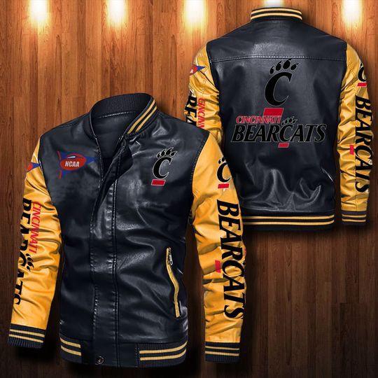 Introducing the Cincinnati Bearcats Leather Bomber Jacket, a true masterpiece that embodies style, comfort, and team spirit. Made with utmost precision and crafted from premium quality leather, this jacket is a must-have for any Bearcats fan.