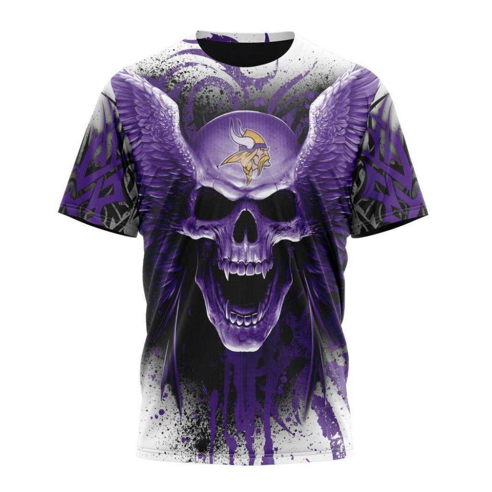 Designed with meticulous attention to detail, this t-shirt features a striking skull art design that embodies the fierce spirit of the Minnesota Vikings. The intricate artwork showcases the team's iconic logo, symbolizing your loyalty and passion.