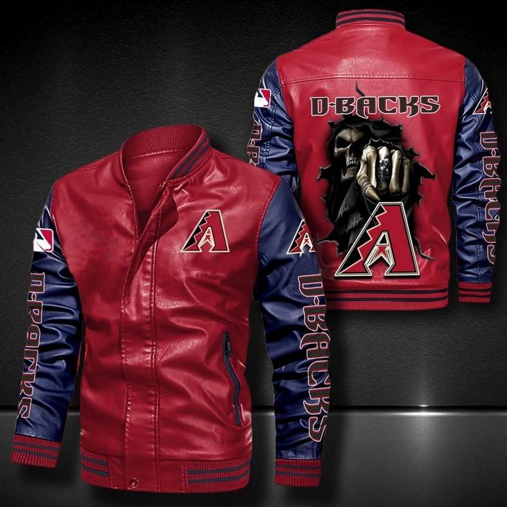 Introducing the Arizona Diamondbacks Leather Bomber Jacket, the epitome of style and team spirit! Made with premium quality leather, this jacket showcases the iconic Diamondbacks logo, making it a must-have for any baseball enthusiast. Its sleek design, featuring ribbed cuffs and waistband, exudes timeless charm and ensures a snug fit, keeping you warm on chilly game nights. The jacket also boasts a full-zip front with a snap button placket, providing added convenience. With its superior craftsmanship, this jacket guarantees durability, allowing you to show off your team pride for years to come. Whether you're at the ballpark or out and about, this jacket is a versatile addition to your wardrobe, effortlessly elevating any outfit. Perfect for gifting or treating yourself, the Arizona Diamondbacks Leather Bomber Jacket is a valuable investment that lets you showcase your loyalty to your favorite team while staying in vogue. Join the Diamondbacks' fan club and stand out from the crowd with this exceptional piece of apparel!