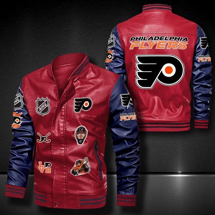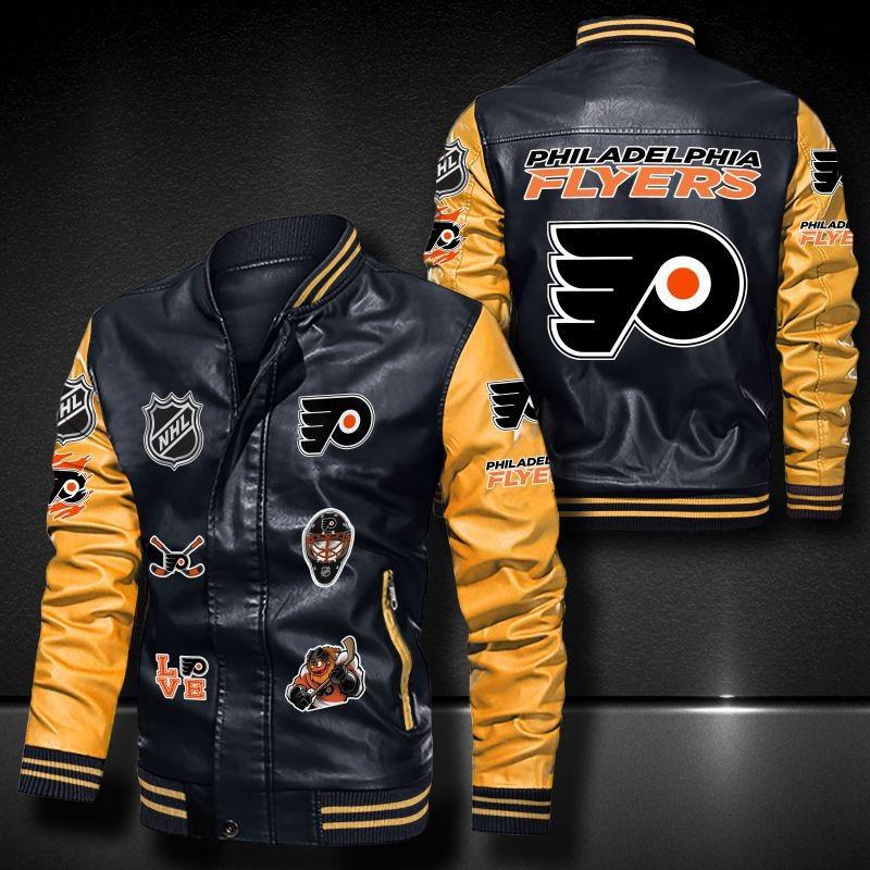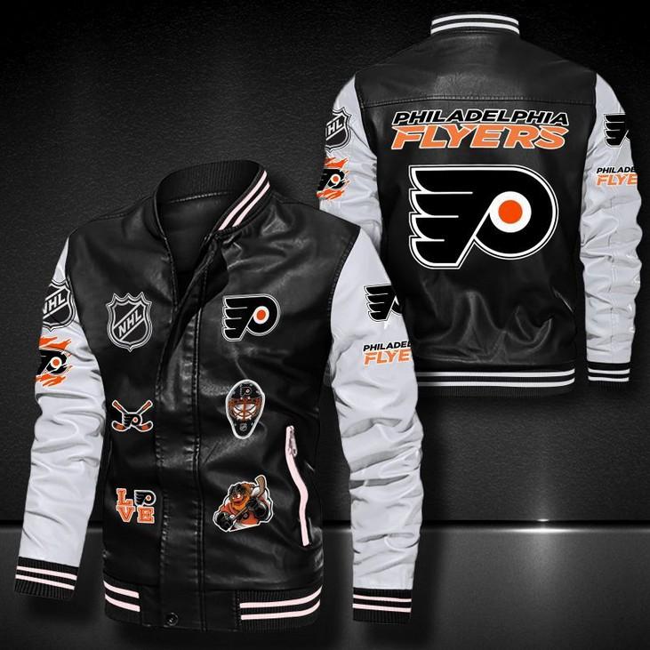 Wearing this jacket is more than just supporting your favorite team; it signifies your dedication to the Flyers and your love for the game. It's a statement piece that sparks conversations and creates unforgettable memories. Show your loyalty and stand out from the crowd with this Philadelphia Flyers Leather Bomber Jacket.