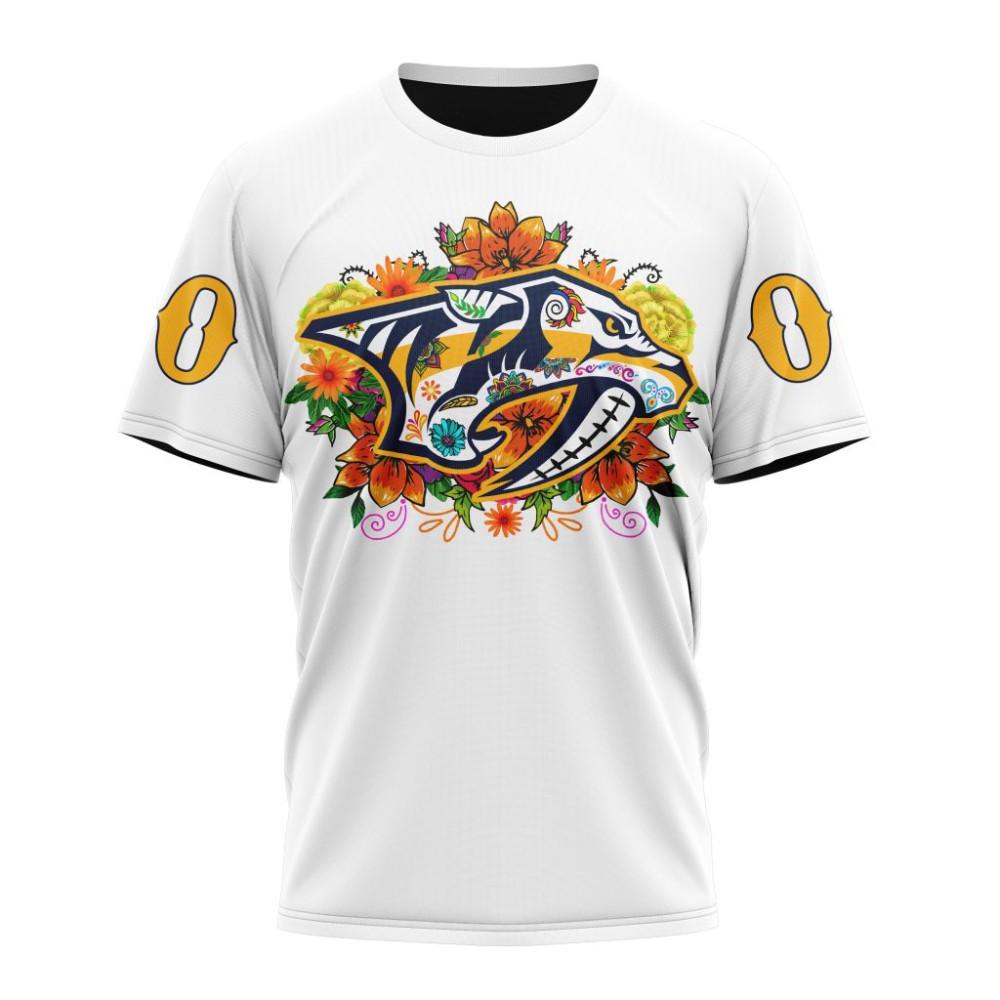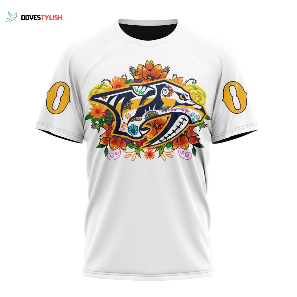 The Nashville Predators Specialized Dia De Muertos Unisex TShirt is a must-have for passionate fans of this iconic NHL team. Celebrate the fusion of hockey and Mexican culture with this unique and captivating design.