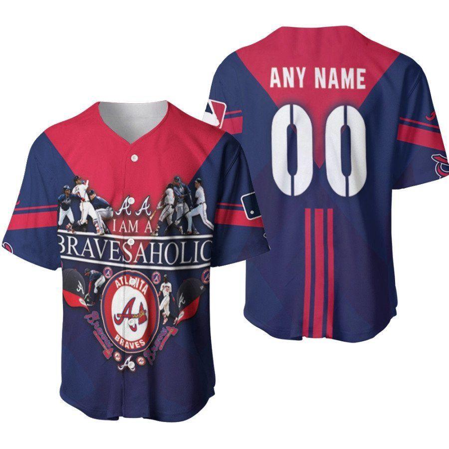 Atlanta Braves I Am A Bravesaholic Baseball Team Designed Allover Gift With Custom Name Number For Braves Fans Baseball Jersey