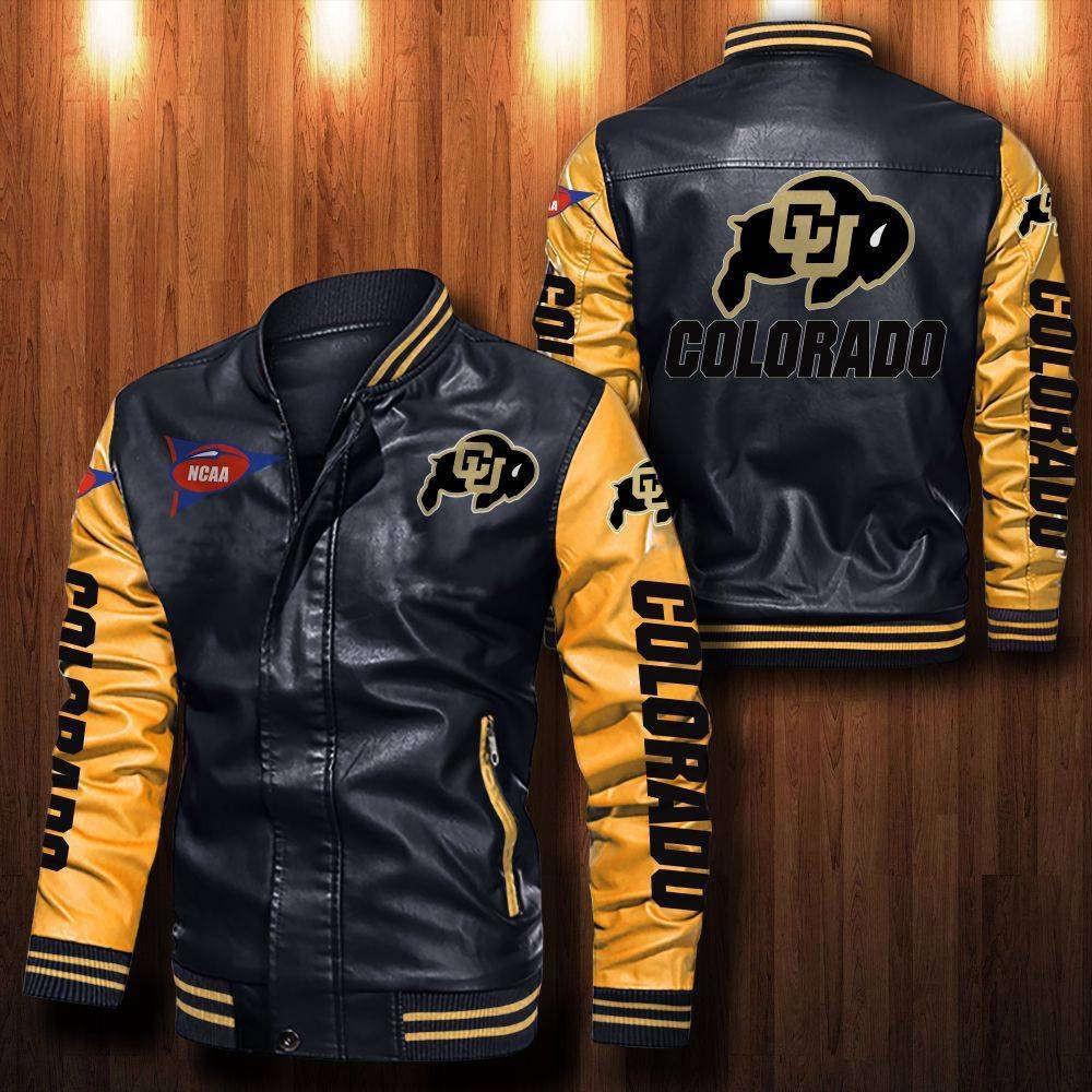 Introducing the Colorado Buffaloes Leather Bomber Jacket, a must-have for any proud fan of the legendary team! This premium jacket is meticulously crafted from genuine leather, ensuring unmatched durability and style. The iconic team logo is prominently displayed on the chest, showcasing your unwavering support. With its comfortable fit and rib-knit cuffs and waistband, this jacket offers optimal warmth and a snug feel. Whether you're heading to the game or out on the town, this versatile jacket effortlessly combines fashion and fandom. Stand out from the crowd and celebrate your team spirit while enjoying the ultimate comfort and style. Own this timeless piece of memorabilia and make a statement wherever you go. Order now and proudly wear your allegiance to the Colorado Buffaloes!