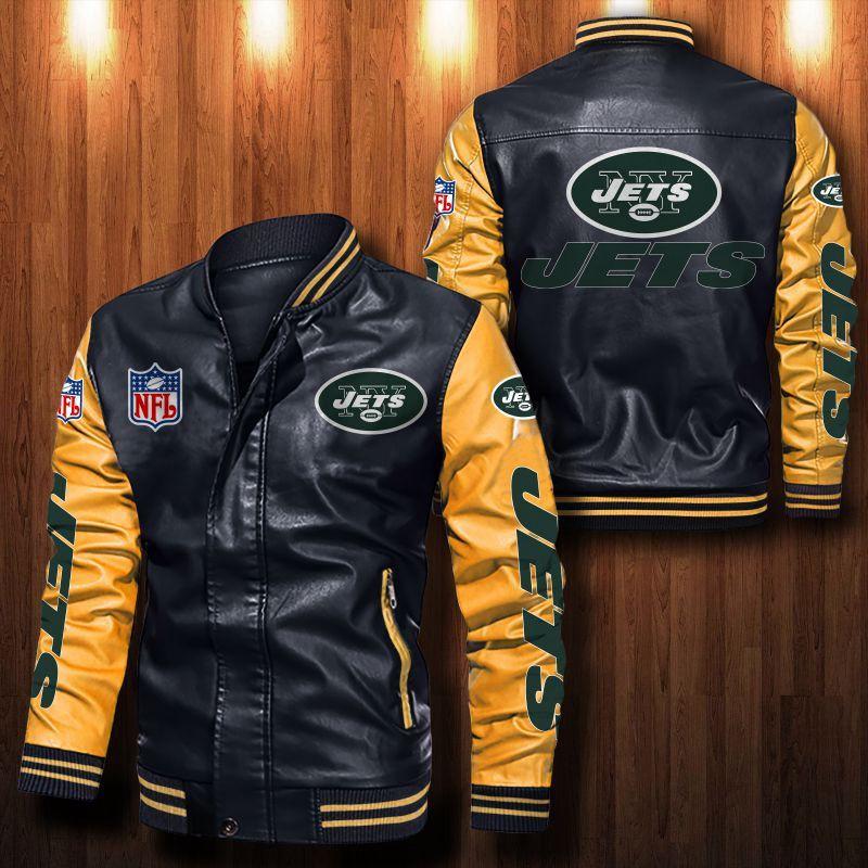 Introducing the ultimate symbol of style and team pride: the New York Jets Leather Bomber Jacket. Crafted with meticulous attention to detail, this jacket is a must-have for every die-hard Jets fan.