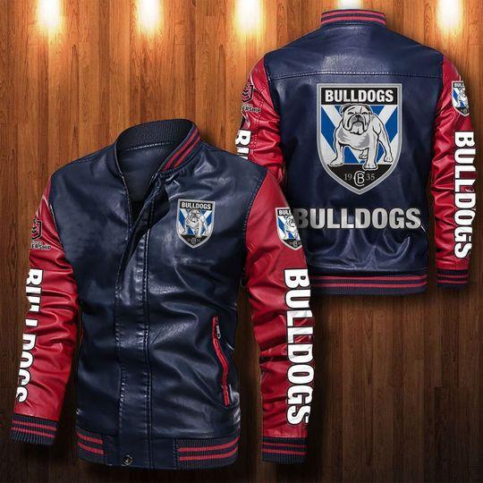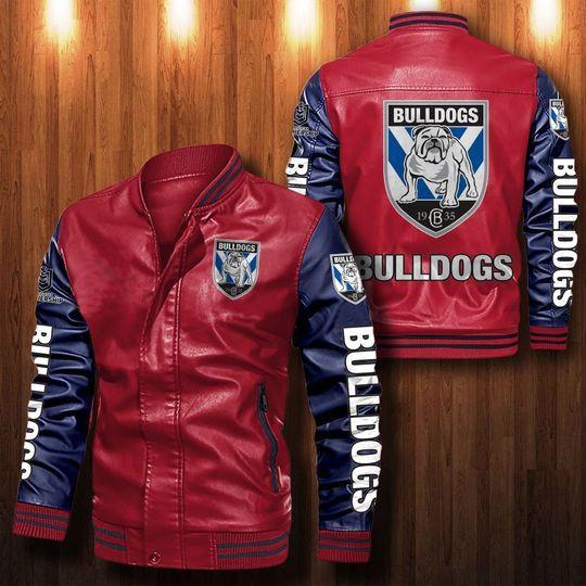 Invest in this premium jacket and show off your unwavering support for the Canterbury Bankstown Bulldogs. Not only will you look effortlessly cool, but you'll also be contributing to the success and legacy of your favorite team. Join the pack and make a statement with the Canterbury Bankstown Bulldogs Leather Bomber Jacket today!