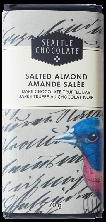Chunks of almonds with a dash of sea salt in rich dark chocolate.