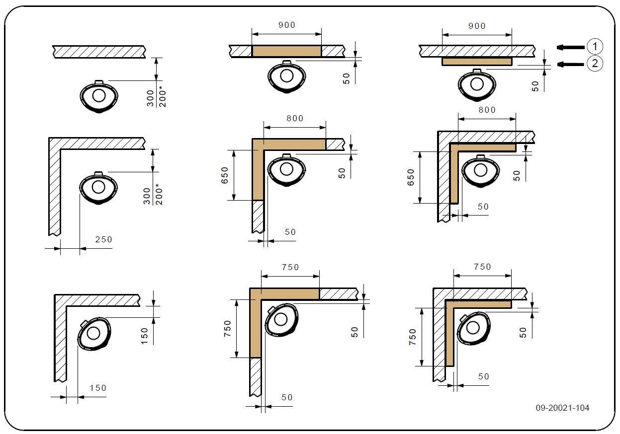 Sicherheitsabstand: Hinten / Seite / Vorne (mm)