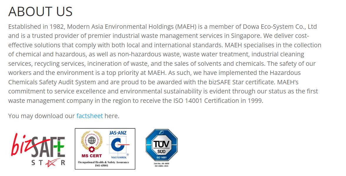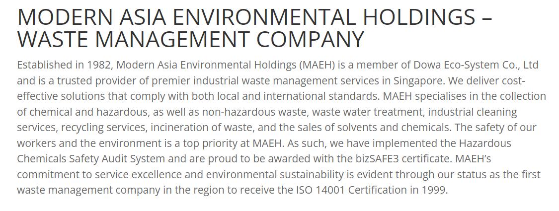 info@wms-technochem.com VisitOurWebsite Modern Asia Environmental Holdings Pte Ltd
