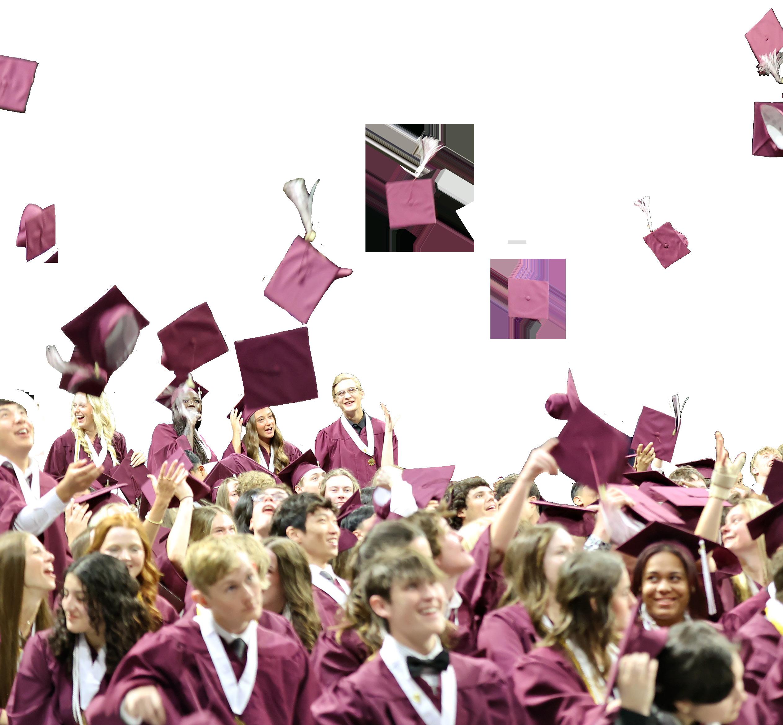 Congratulations to the members of the Class of 2023 who celebrated commencement on May 26 at the Drake Knapp Center. To show our unity, all graduation gowns are maroon. The white sash represents St. Joseph Academy, one of our founding schools, and the importance of Dowling Catholic’s history. To signify the lifelong connection formed once students join our alumni family, graduates wear a medallion which reads “Once a Maroon, Always a Maroon.” Graduates also wear regalia which indicate specific honors.