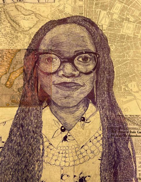 Students picked a notable member of the Downe House alumnae to feature in their work. They then researched their chosen person and put together a large collage of imagery that is reflective of the respective alumna’s life and achievements –this formed the background of their piece