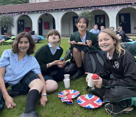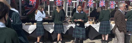 served by our catering team. The sandwiches reflected the voting choices of the community and featured everything from tuna and cucumber to cheese and ham, and chicken salad. There were cupcakes with brightly coloured icing (and a few blue tongues were seen after eating) as well as traditional scones with jam and cream. It took nearly two hours for all of the School to have tea and there was a relaxed party atmosphere with a play list of music chosen by our Head and Deputy Head Seniors that stretched across the 70 years of the Queen’s reign.